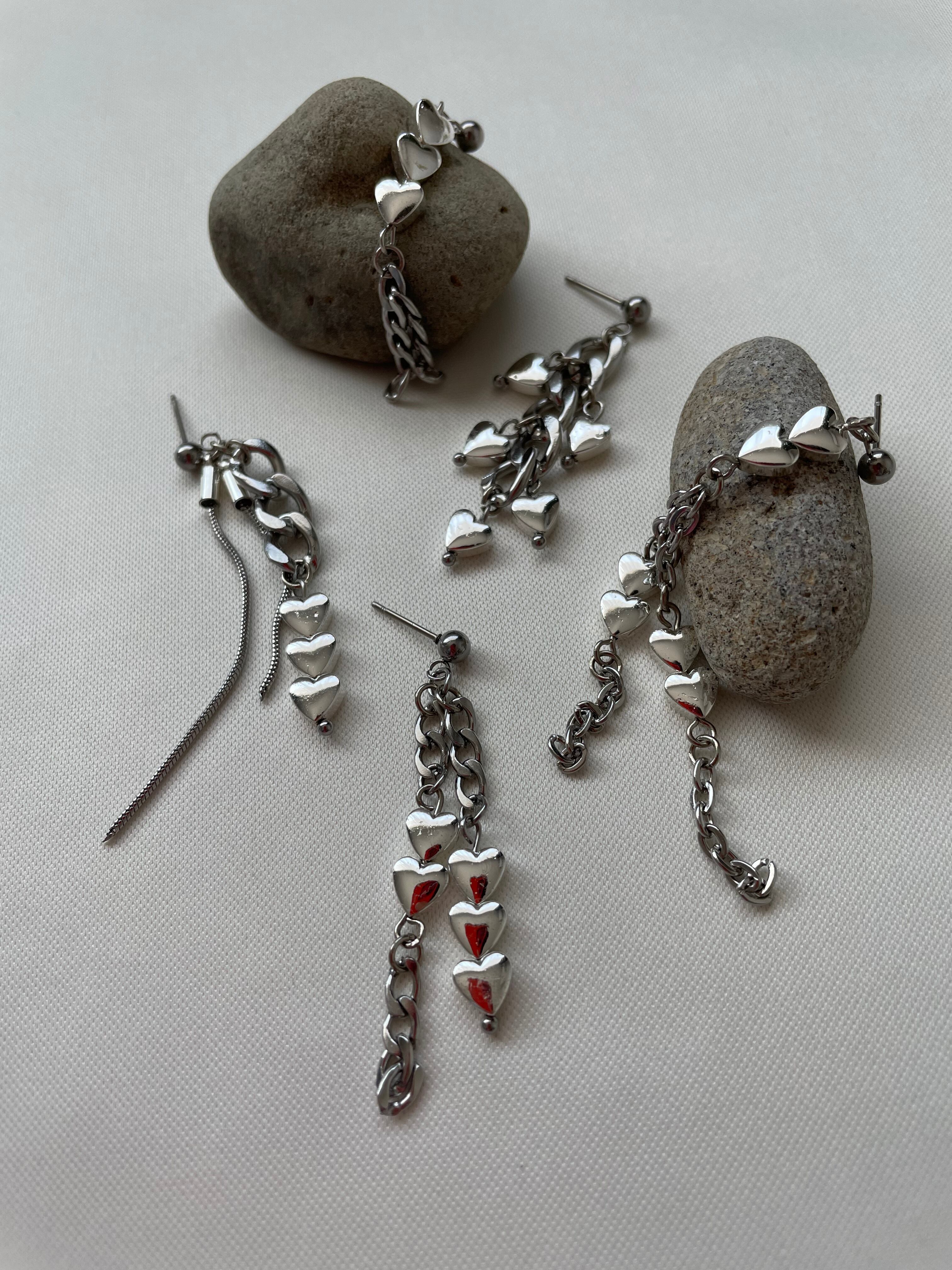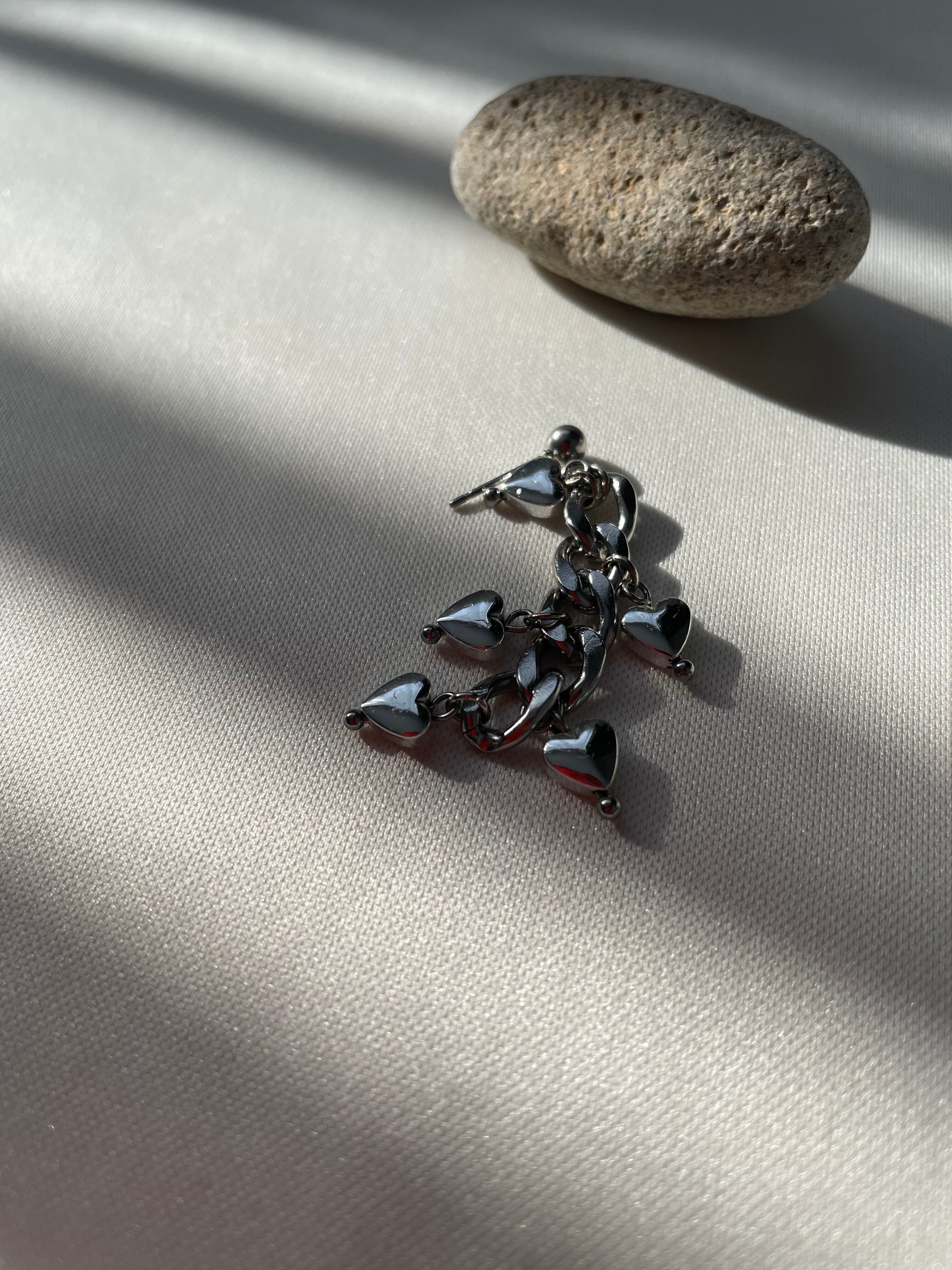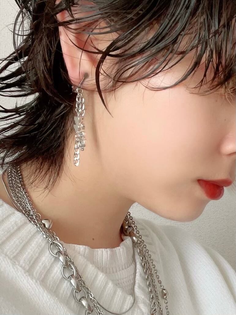 シルバーのハートやチェーンを使ったピアスです。