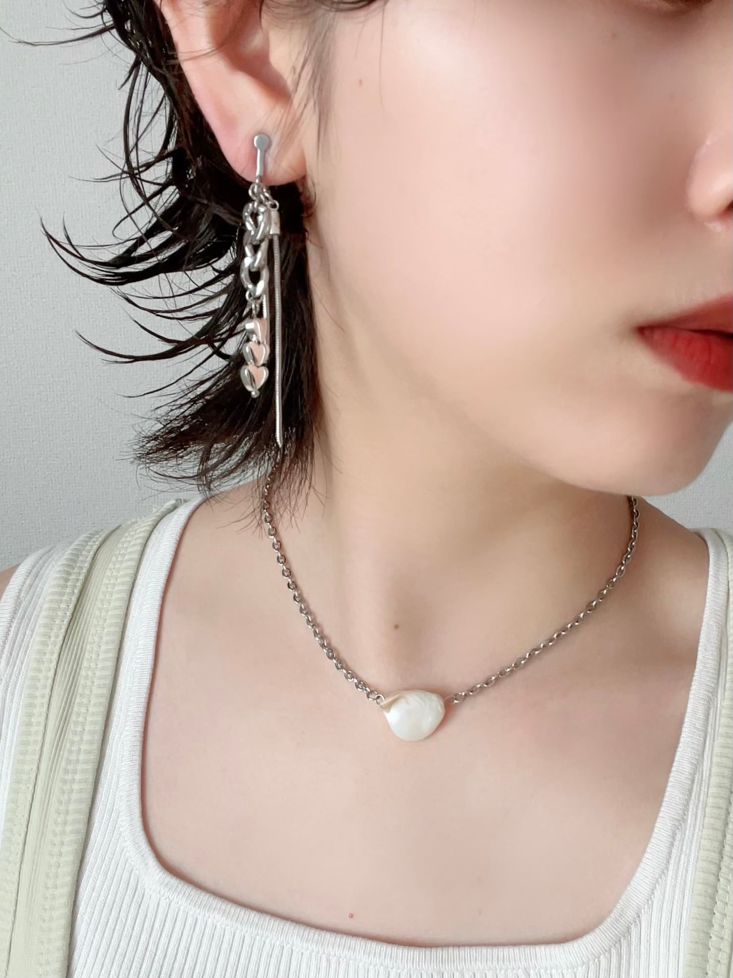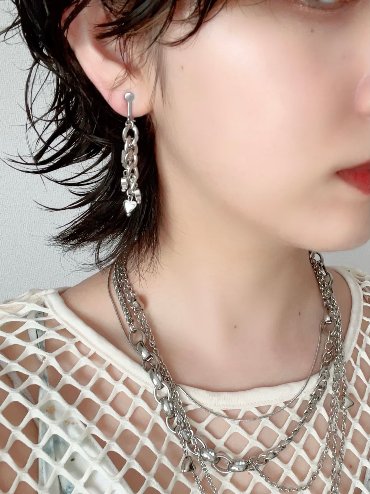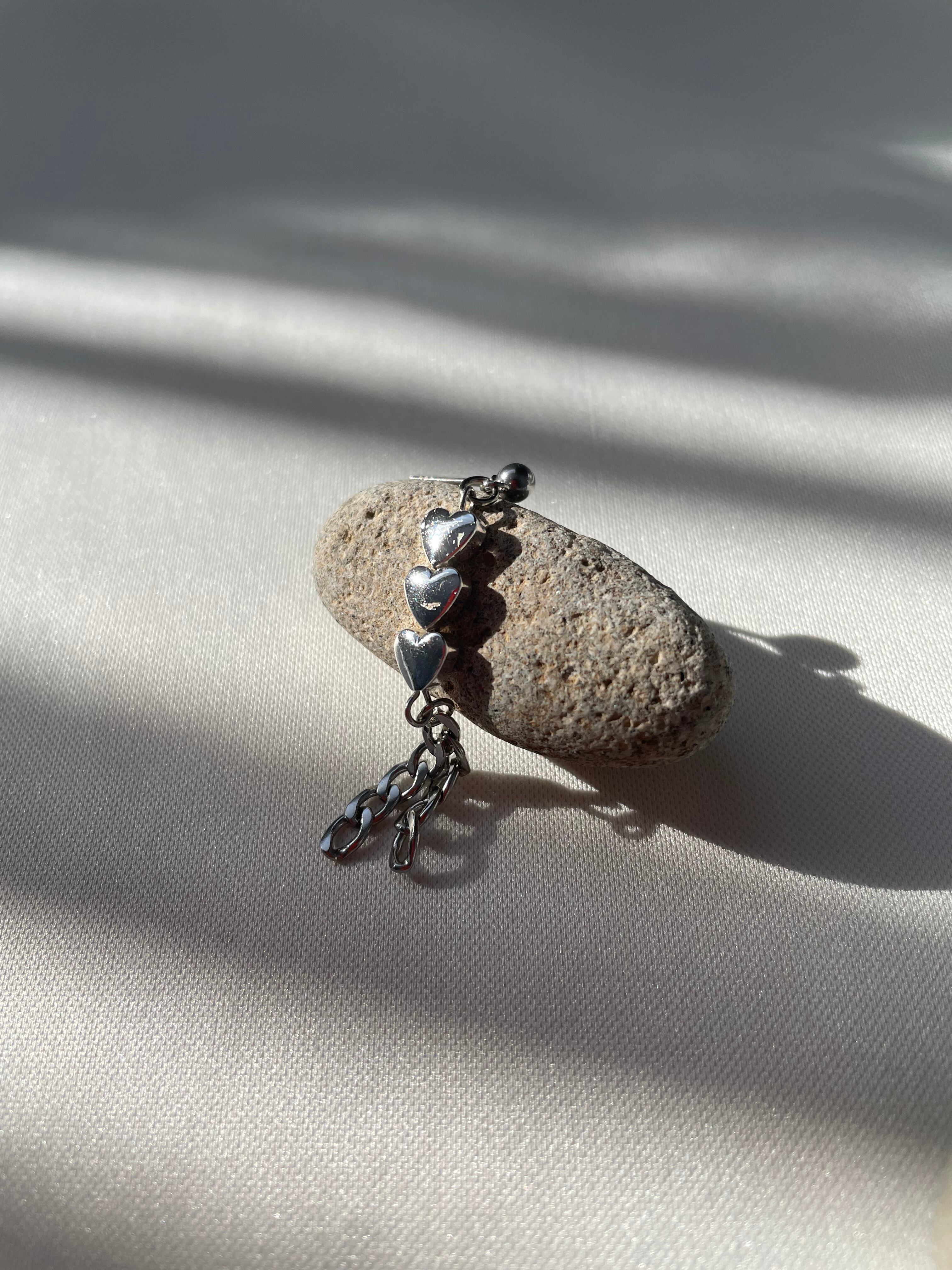 シルバーのハートやチェーンを使ったピアスです。