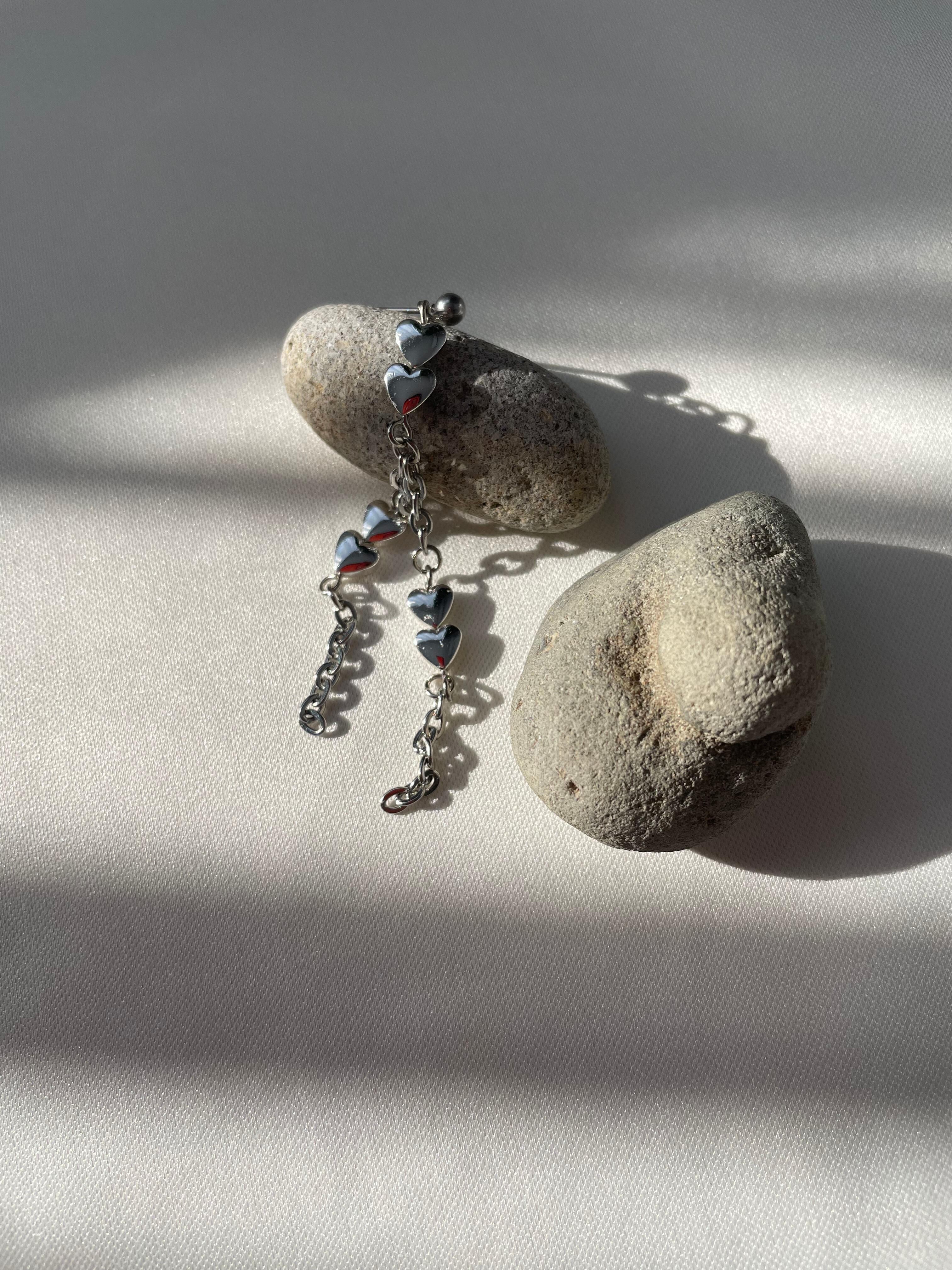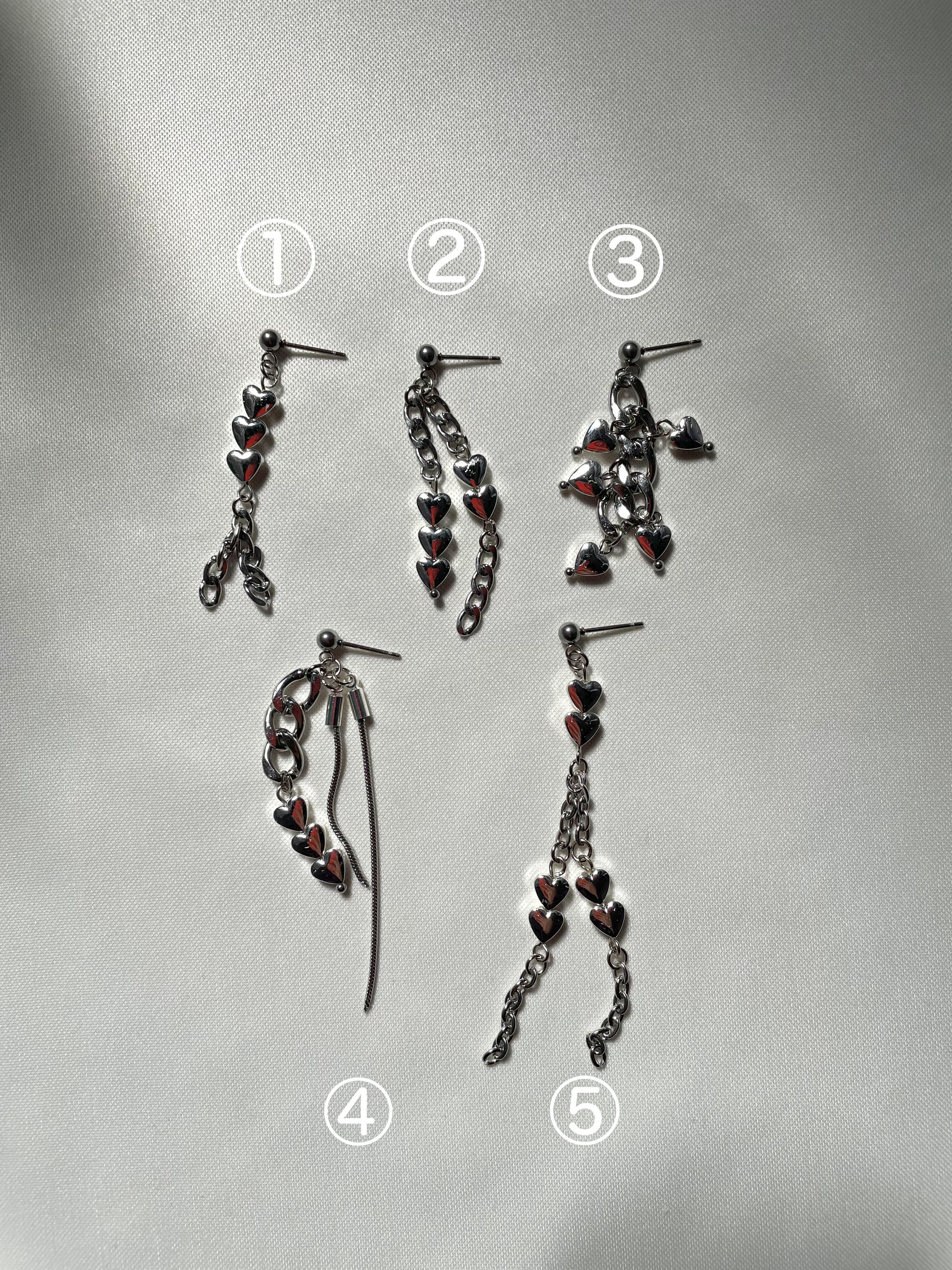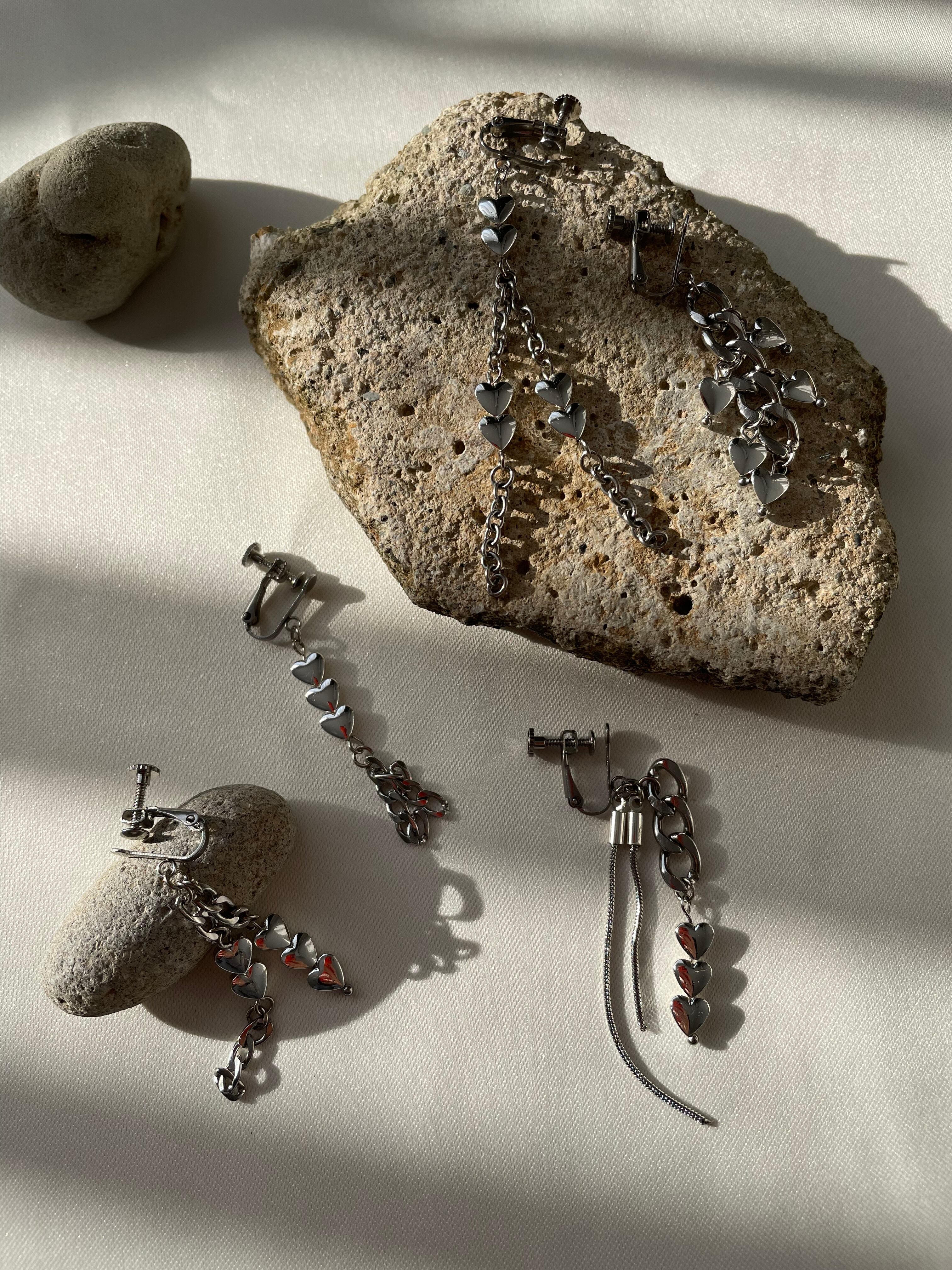 シルバーのハートやチェーンを使ったイヤリングです。