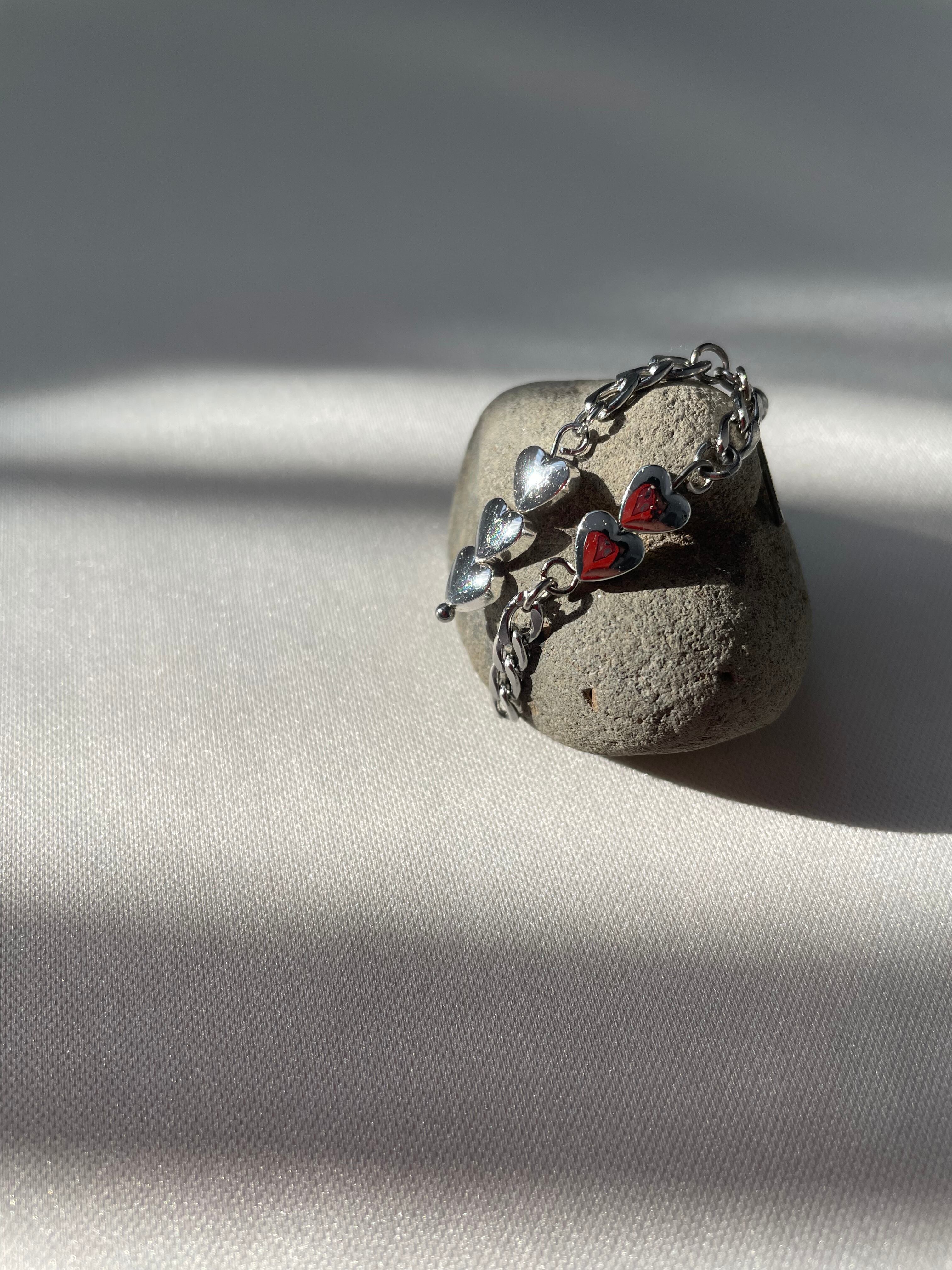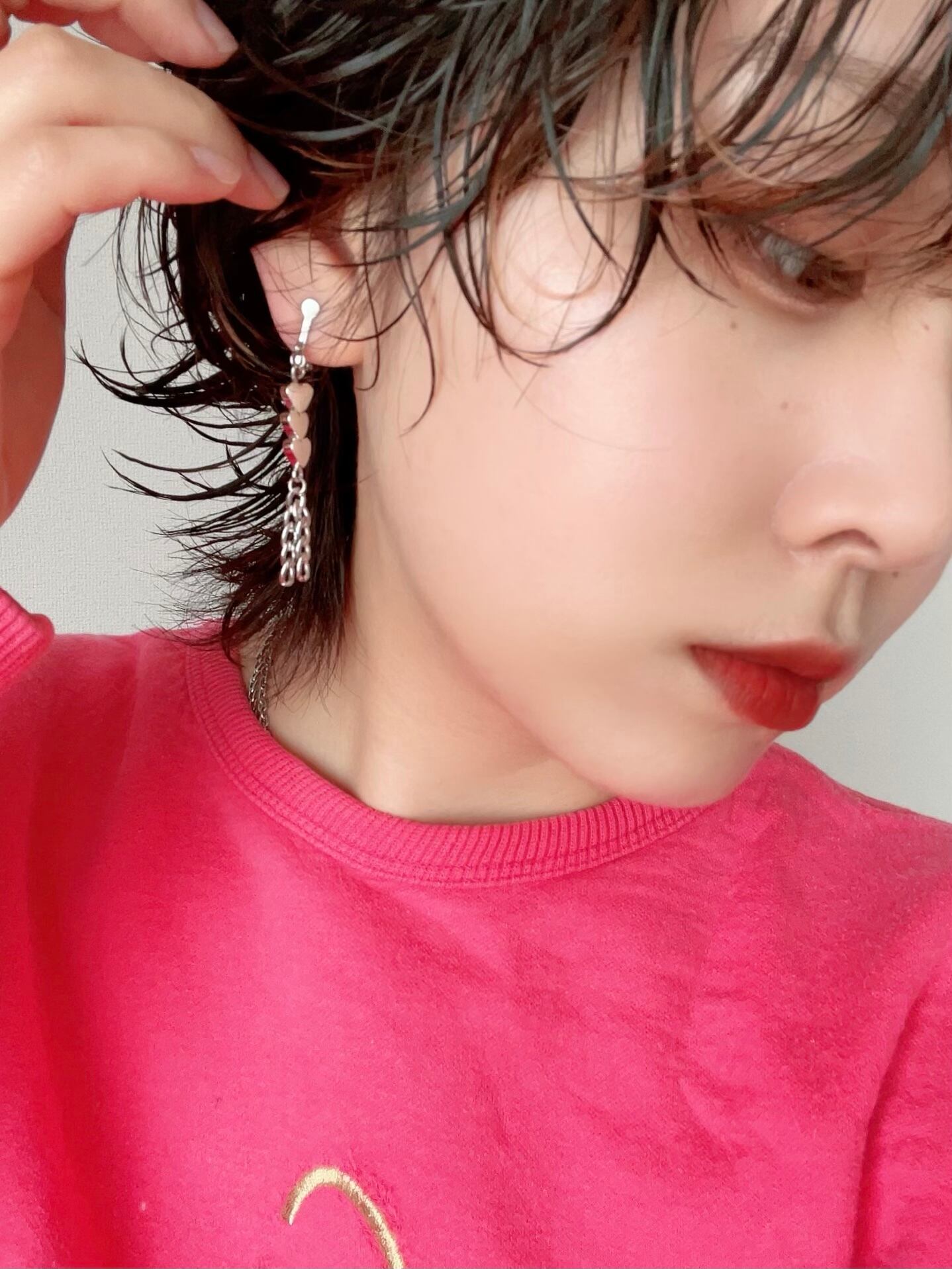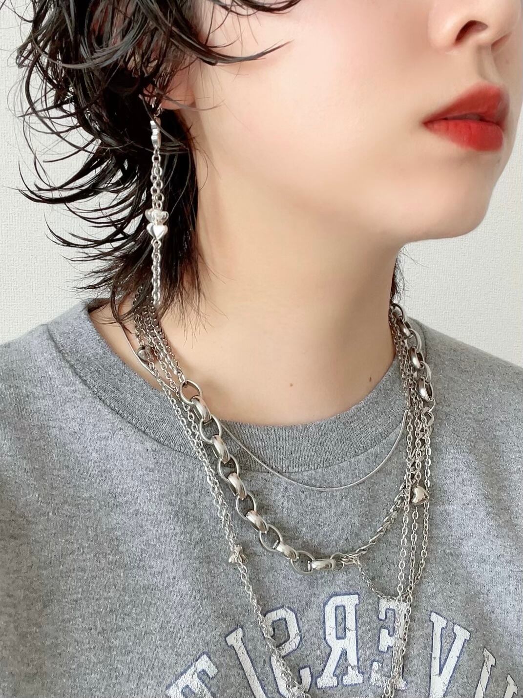 シルバーのハートやチェーンを使ったイヤリングです。