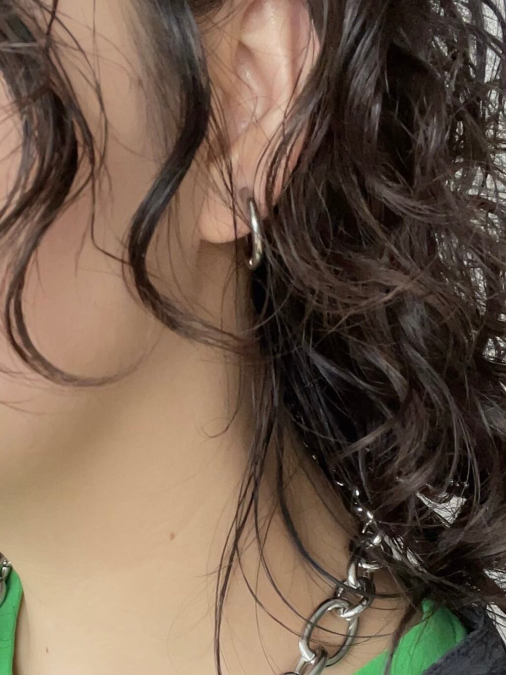 ミニマルなサイズ感ですがチェーンとの組み合わせで、充分な存在感のあるピアス